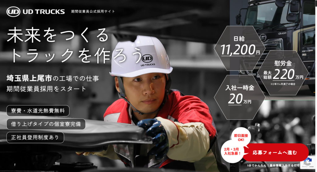 今回は、ニュース特番【UDトラックス上尾 期間工求人】を